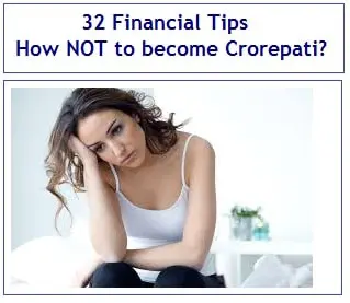 Some of us never dream on how to become Crorepati in our life. If you want to spend your money lavishly and don’t do planning there are good chances that you won’t become Crorepati in your life. One can do bad financial planning and screwup their financial status and would not become Crorepati in their life. In this artile, I would provide 32 tips on how NOT to become Crorepati in your life. One should read this article by spending few minutes, understand the spirit behind this article and go through these tips on How NOT to become Crorepati in your life. If you can give your comment about this article in comments section, it would really help me to understand that it was useful for you.